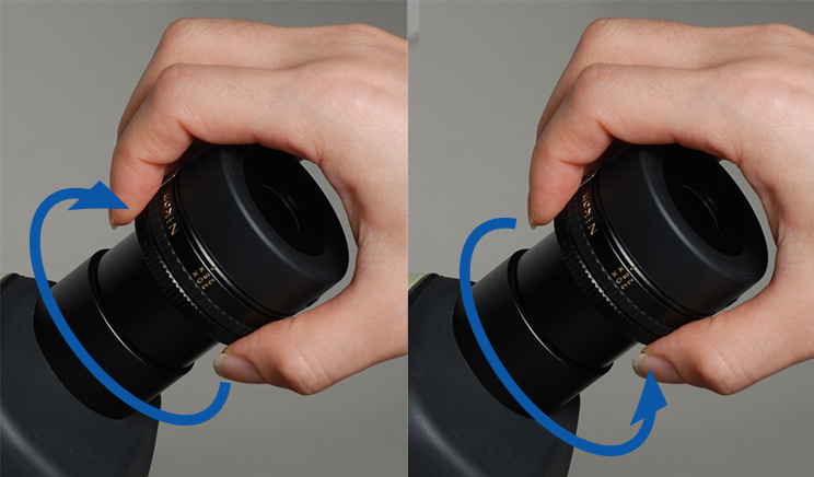外す場合は接眼レンズ着脱レバーを押しながら右へ回します。