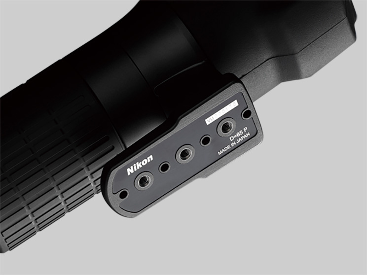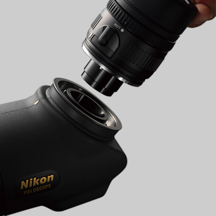 (1)フィールドスコープに接眼レンズを取り付けます。